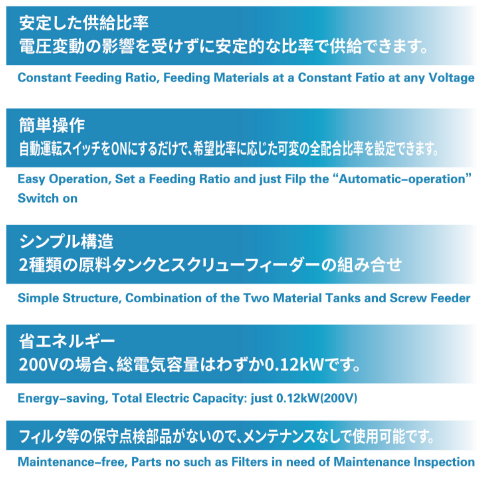 廉価型容量計(jì)量裝置 カワタのミックタンクは2種類(lèi)の材料(主材+粉碎材)を任意の混合比率で供給可能な簡(jiǎn)易計(jì)量機(jī)です。
